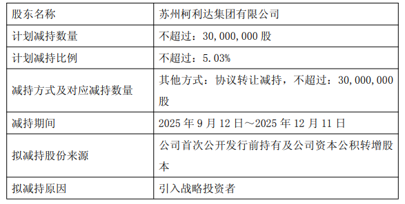 中国经济网络北京,9月9日,圣凯利达(603828.SH)昨晚宣布了有关控制股东协议转让计划的广告,并在公告披露之日,股东Suzhou Kelida Group Co.,Ltd。代表该公司股份的25.45%,占该公司的股本,该股票已接受。行动的来源是公司的首次公开报价和资本储备的conversion依。在传播日期后的六个月内,Kelida Group计划通过合同转让转让公司的股份,该合同转让占公司总股本的5.03%。该计划中的页岩的原因是介绍战略投资者。 Kelida Group,Colculeado的最后一次收盘价为4.89元,预计将收取1.47亿YUAN。圣凯里达(St. Kerrida)于2024年9月19日晚上宣布了他的股东转会计划。消除日期后三天的六个月,该公司的控制股东苏州·凯里达集团有限公司在塞普堡·凯利达集团(Sepbor Kelida Group)晚上收到了股东股东集团(Kelida Group)的股东集团(Kelida Group)的诺斯特(Kelida Group),该集团已与Yingzhong Intelligent签署“股票转让”,这是“股票转移”,签署了“行动转移协议”。转让总价为5160万元人民币,通过将合同转移到Yingzhong(占公司总股本的5.03%)。这种行动的改变不会导致我们的股东使用巨魔和控制者的任何变化。圣凯里达(St. Kerrida)于2024年10月30日宣布,凯里达(Kerrida)宣布有关股份转让的公告,以便股东完成注册,该公司已收到“确认安全转移记录”。 2024年,凯里达(Kerida)Group and Shanghai Yingzhong Intellighent Technology Co. Company,Ltd。(以下名称为“ Yingzhong Intelligent”)已签署了“行动转移协议”。 Kelida Group计划通过转让合同转移30,000,000个无限的循环诉讼(占公司总社会资本总资本的5.03%)。公司的控制股东Kerida Group转让本协议的注册程序已完成,转让日期为2024年10月28日。受授权的授权,该公司在2583号法规的规定授权[2020],该公司在2020年12月向某些投资者发行了RMB的普通股。在扣除了不税的63.38.8亿元发行率后,收取的实际资金为20266.6186亿。薪水增加的资金于2020年12月到达。先前的资金是由Longchen Attack Company(特别通用协会)Longchen验证编号[2021] 361Z0004“资本验证报告”验证。该公司对先前收集的资金使用特殊的帐户存储管理。该公司的私人股份的放置由工业证券有限公司(Lunderial Securities Co.目前,圣科里达的股票低于发行的额外价格。
